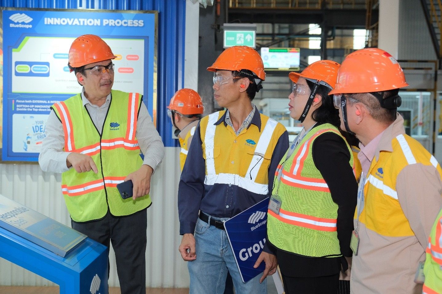 During the visit, participants had the opportunity to observe the company’s automated production line, explore the Innovation Lab, and engage with company leaders to gain insights into how NS BlueScope Vietnam integrates sustainability into its operations through comprehensive governance, safety culture, and responsible sourcing program.